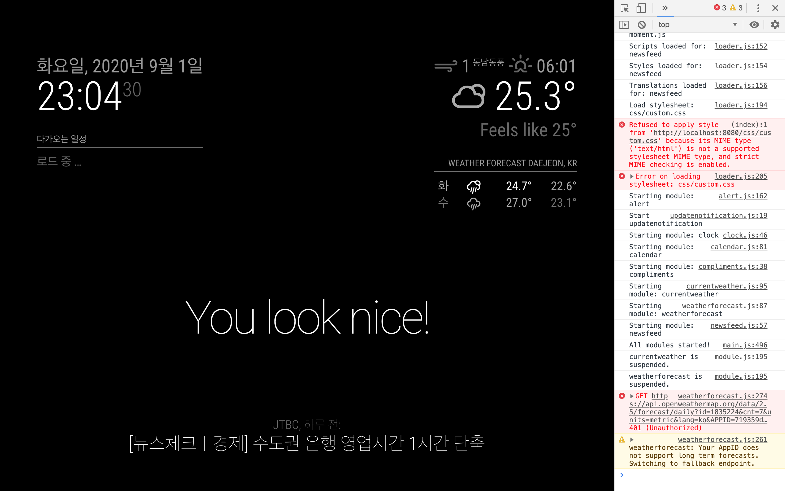 달라진점이 있다면, smart-mirror 대신 MagicMirror2 으로 노선을 바꿨다