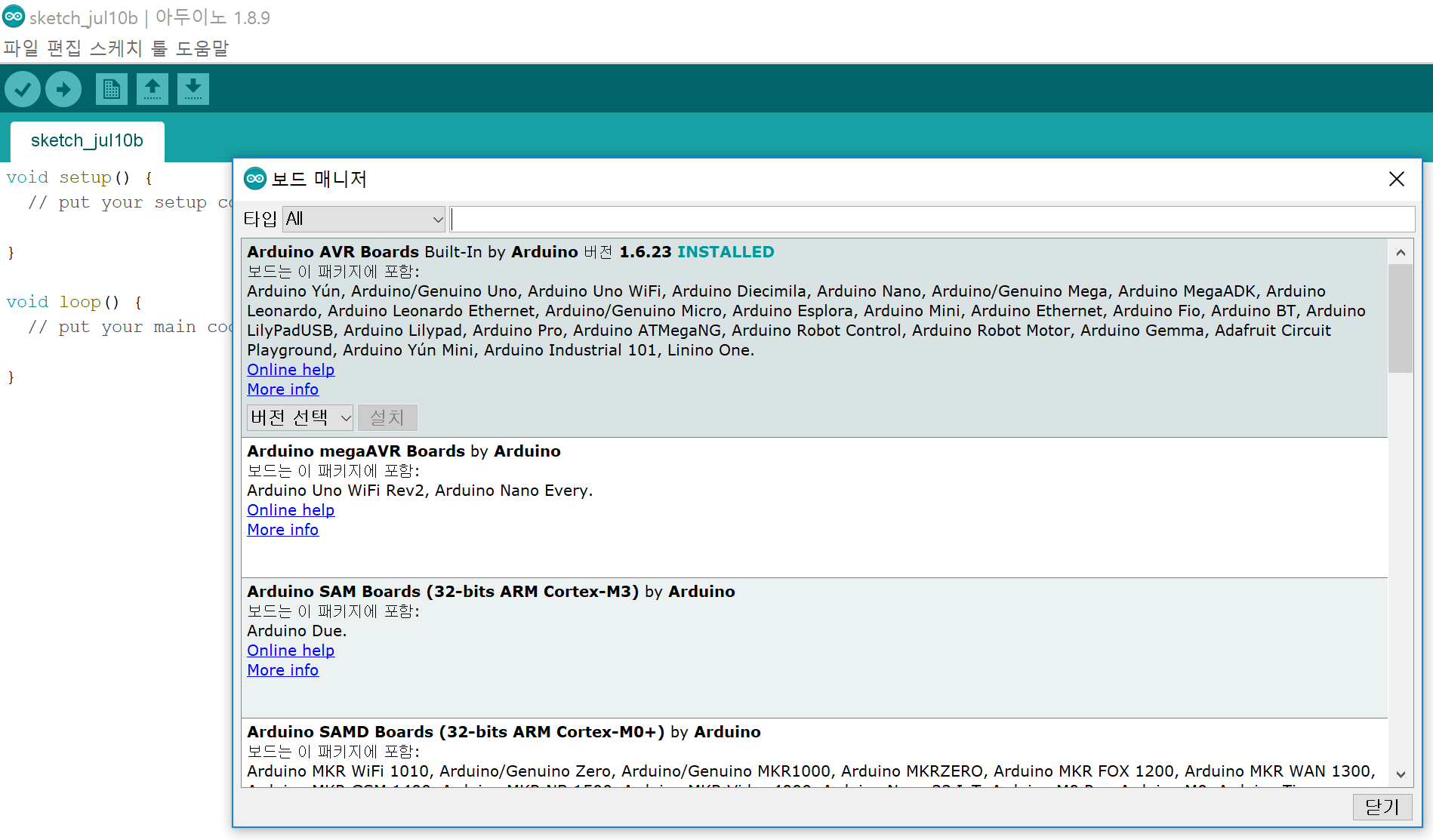 아두이노 설치시 동봉된 보드 말고도 다양한 보드들이 요구되는되요