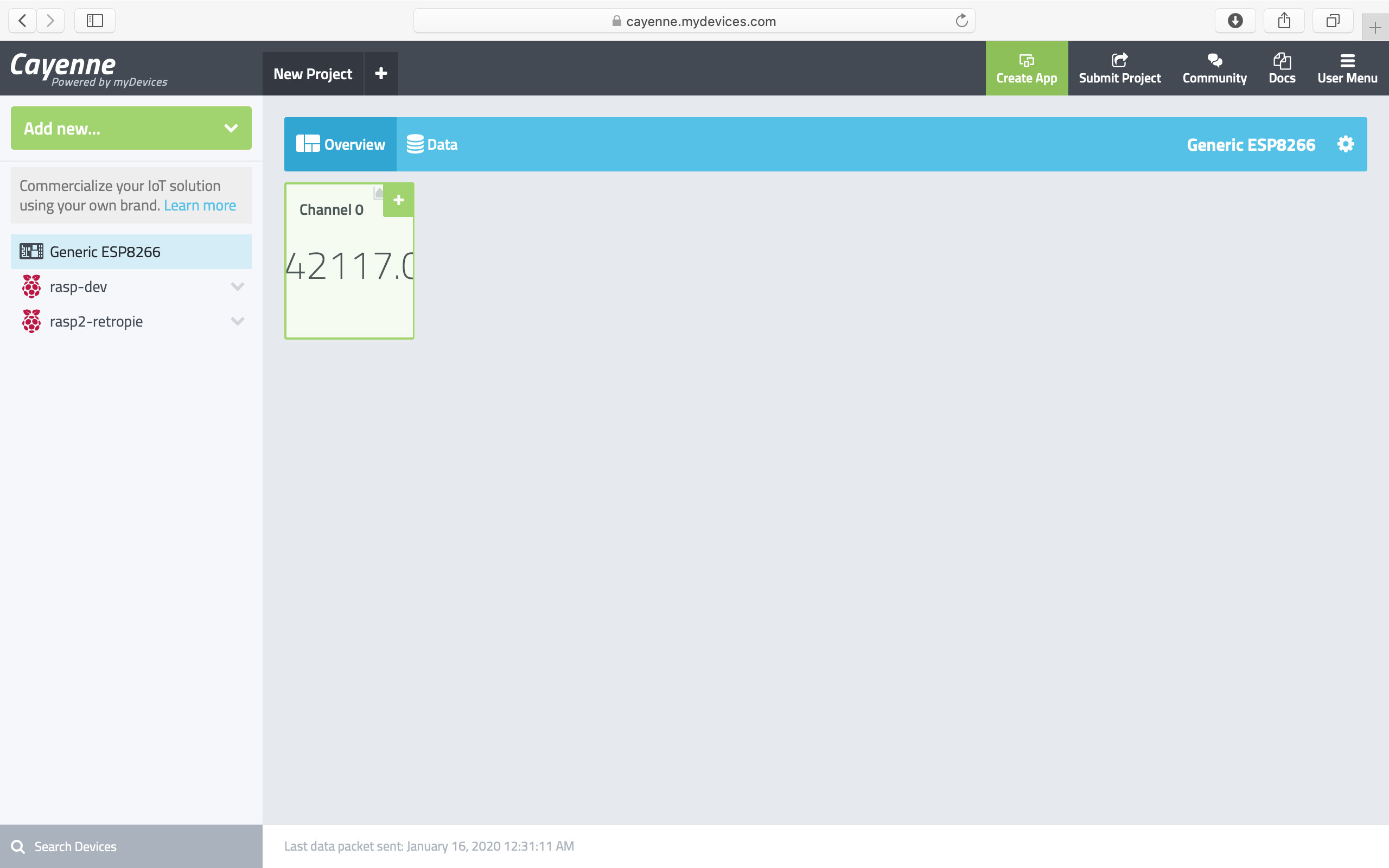 [embedded/IoT] - IoT Platform Cayenne Web/App 사용해보기
