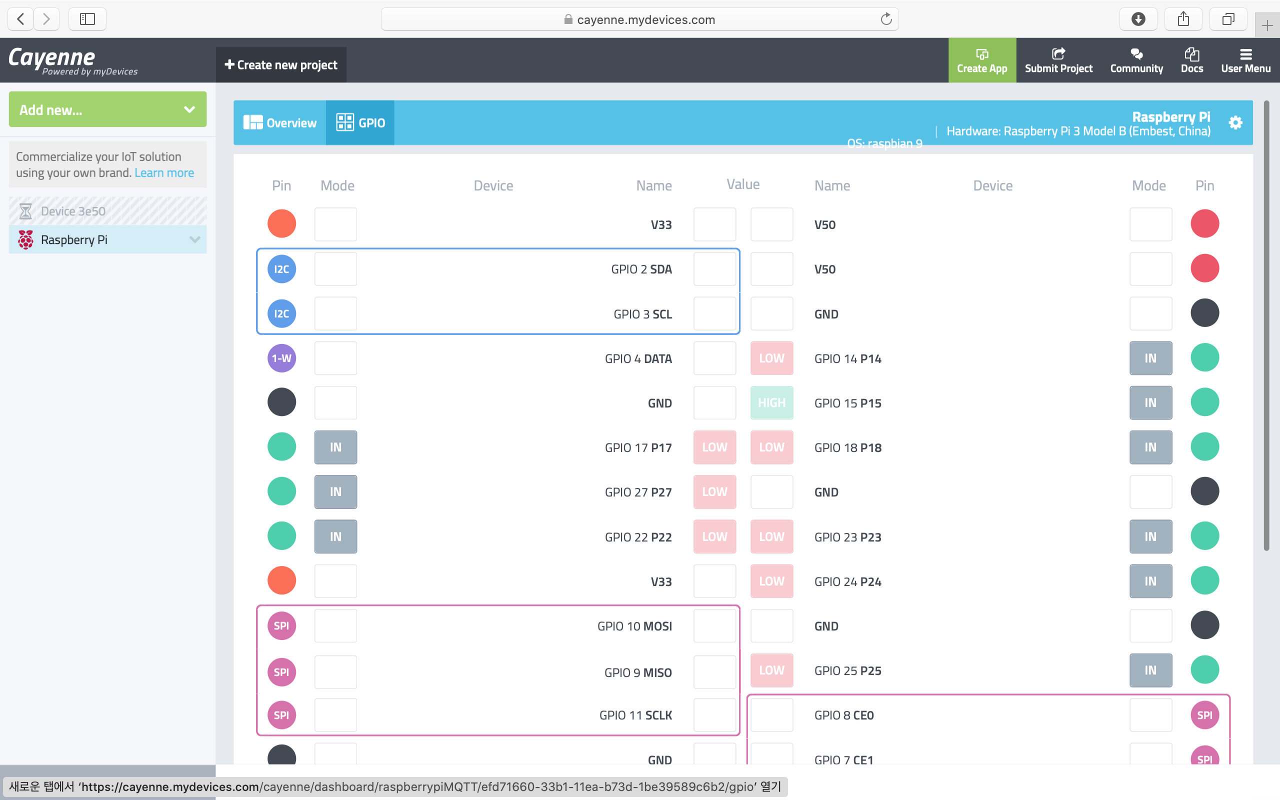 GPIO 탭으로 가보니 GPIO 핀 배선도가 보입니다