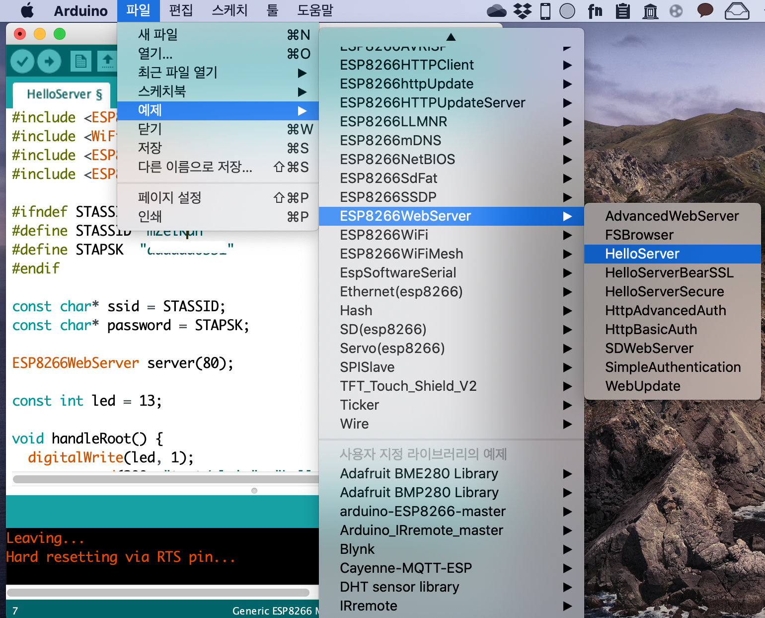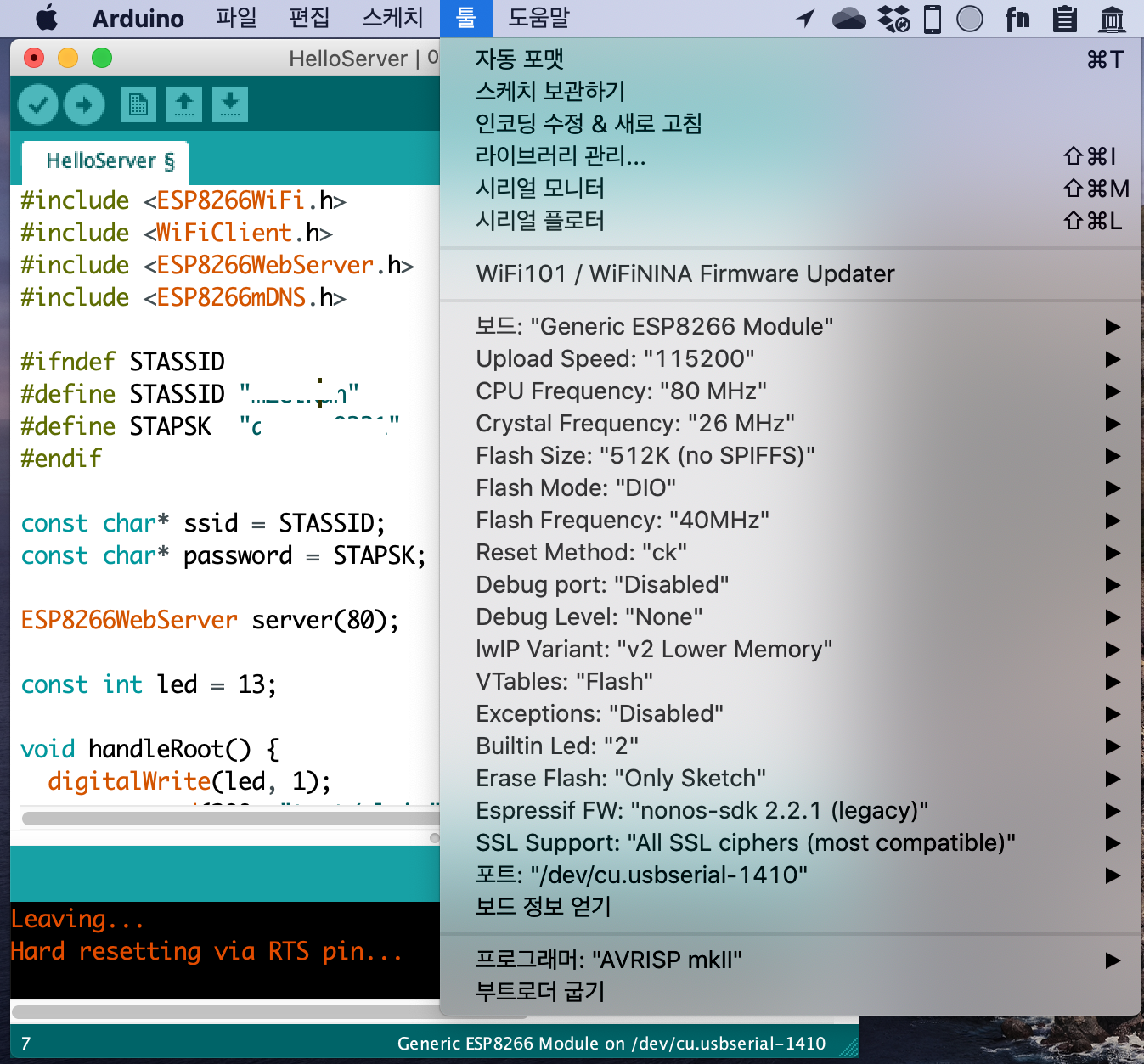 ESP8266WebServer > HelloServer 를 테스트했습니다
