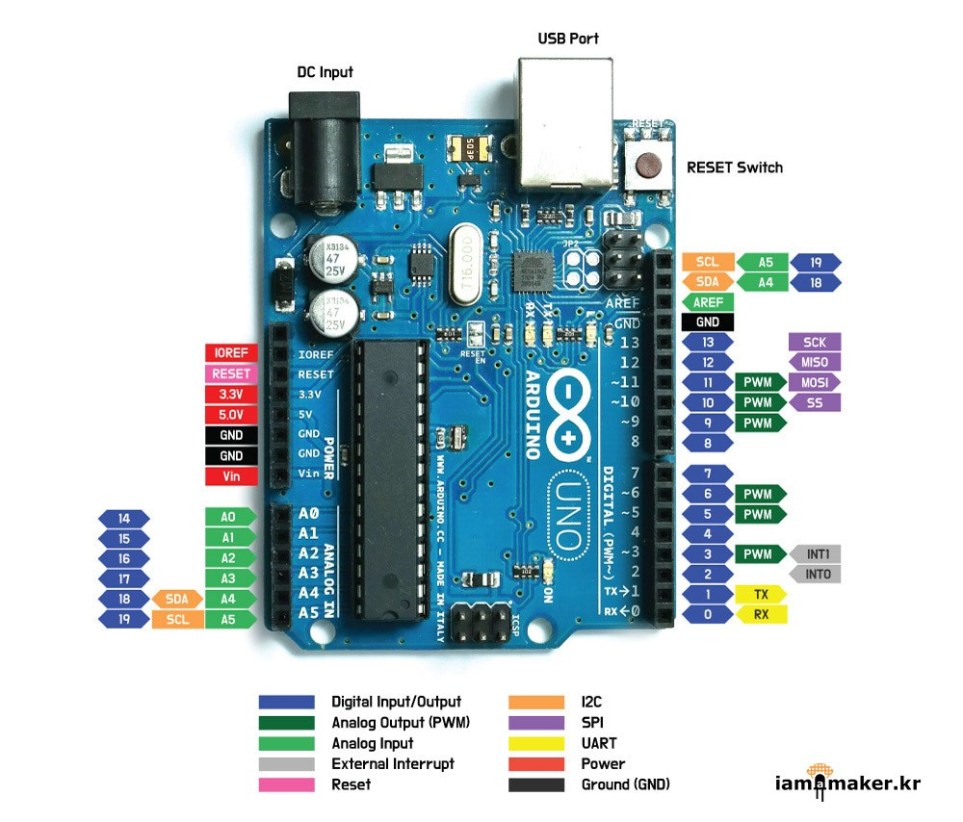 아두이노는 TX, RX 핀을 Uart 모듈의 RX, TX 에 연결하고 GND, VCC를 연결해주면