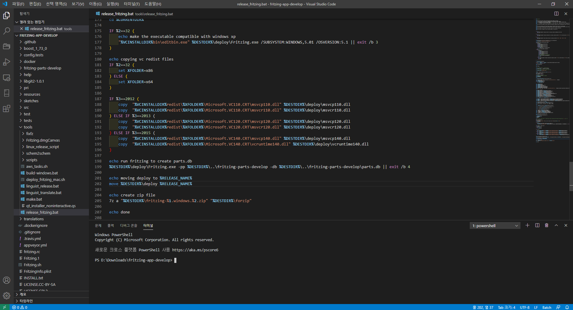 tools/build-windows.bat 을 살펴보니 결국은 tools/release_fritzing.bat 을 실행한다