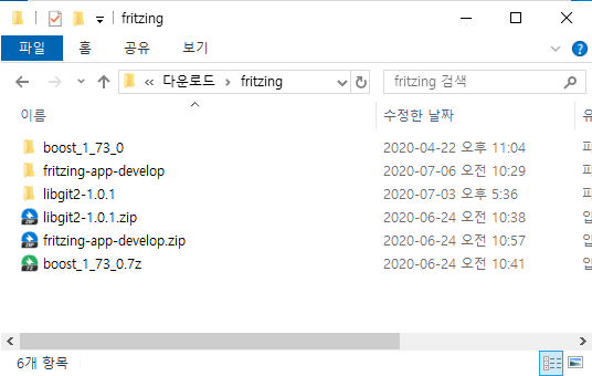 전부 fritzing 디렉토리를 만들고 안에 넣어줬다