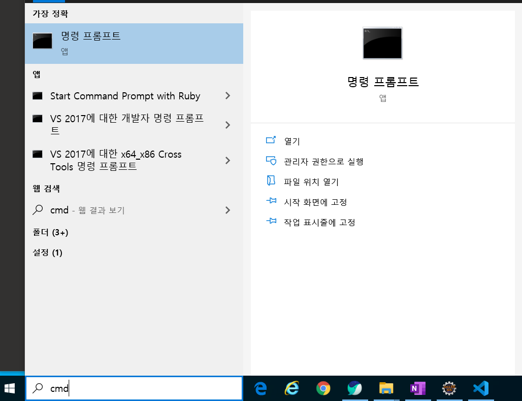 윈도우키를 누르고 cmd를 치면 나온다