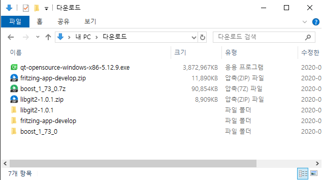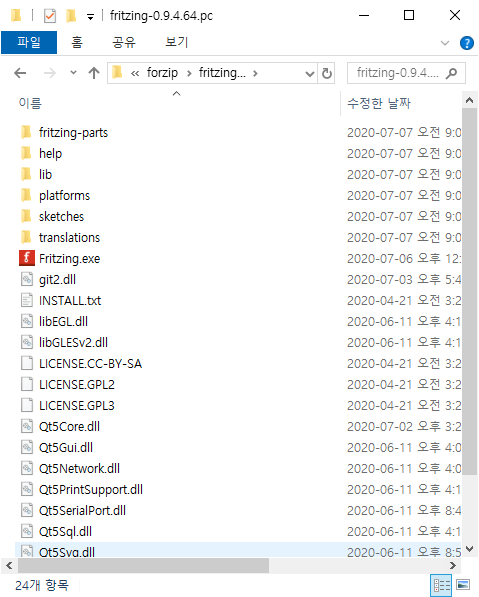 전부 fritzing 디렉토리를 만들고 안에 넣어줬다