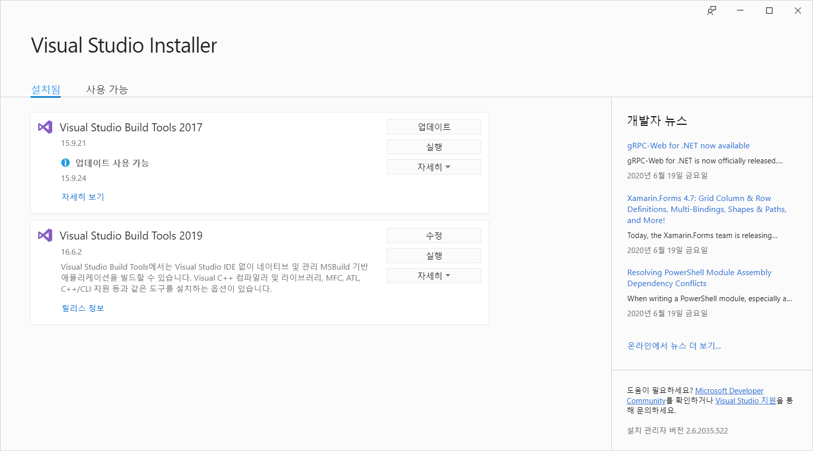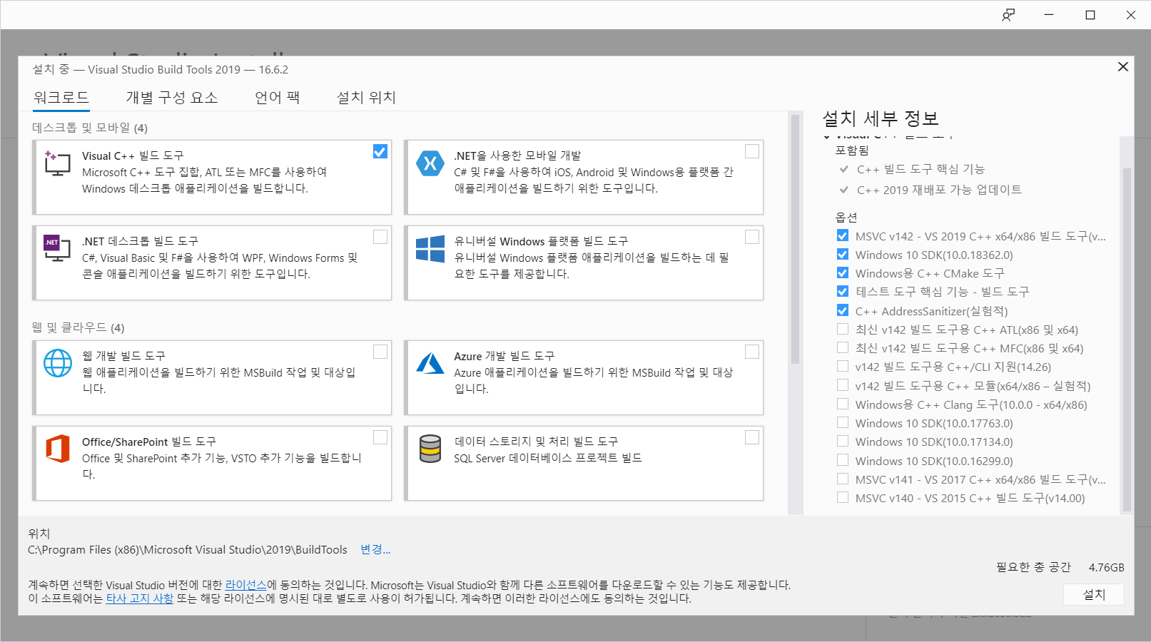 | install Microsoft C++ Build Tools 2017 (0) | 2020.07.06 |