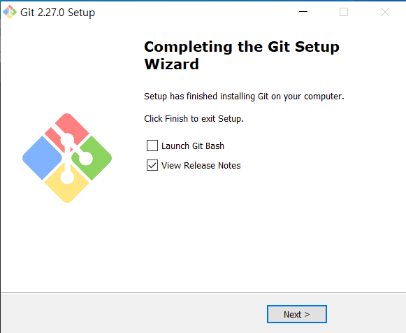 Launch Git Bash를 체크하면 Prompt 창이 하나 뜨는데 별의미는 없다