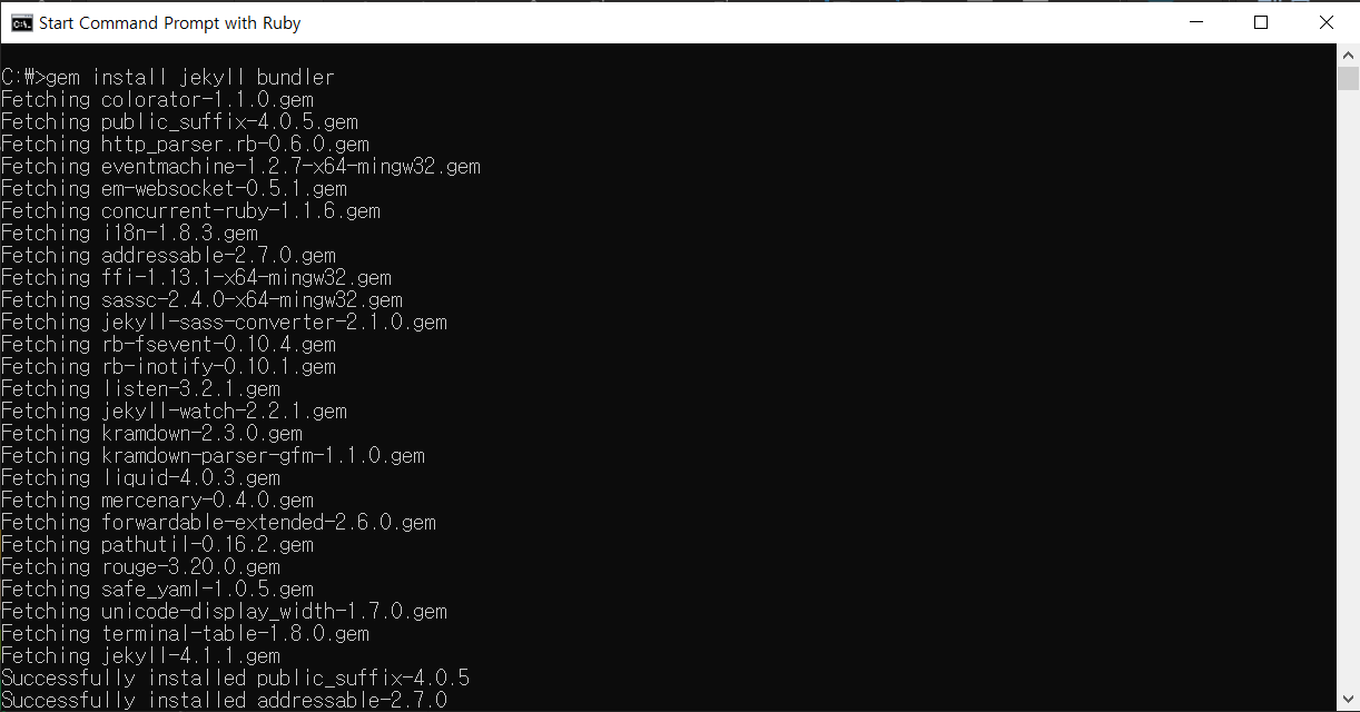 사용을위해 필수적으로 Ruby, gem, bundle 설치되야 하는듯 하며