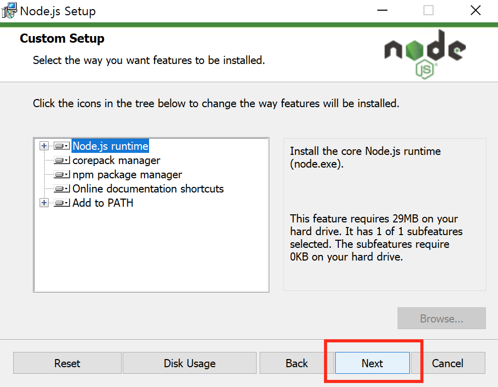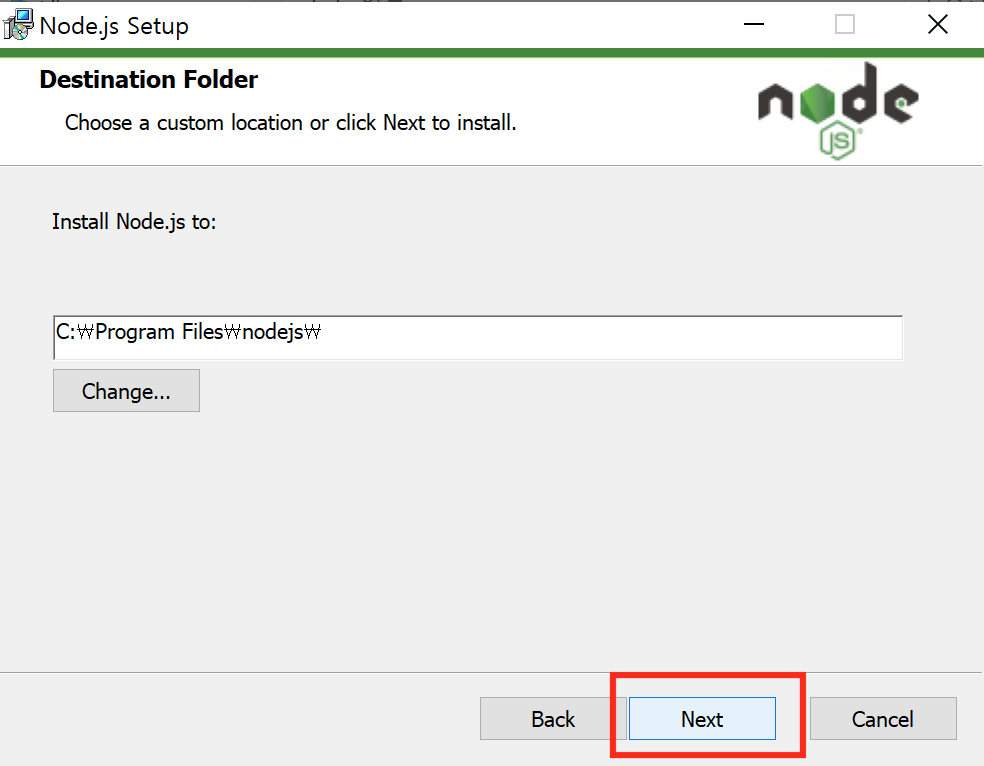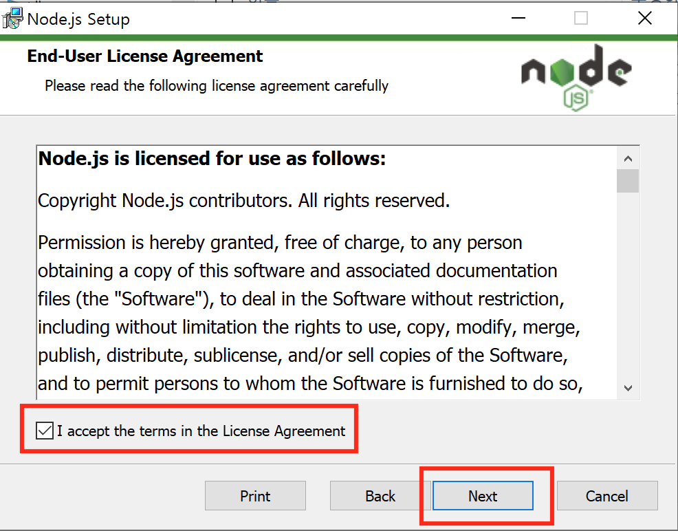 다운받은 nodejs.msi 파일로 설치를 진행합니다